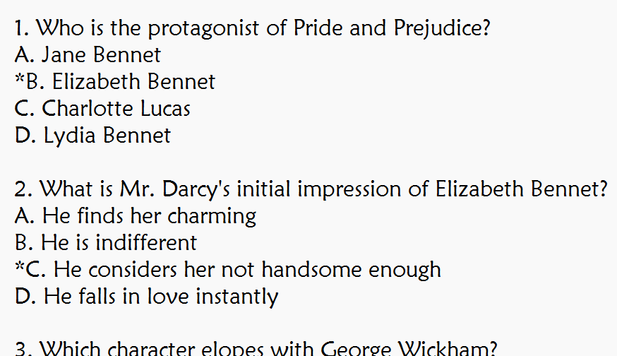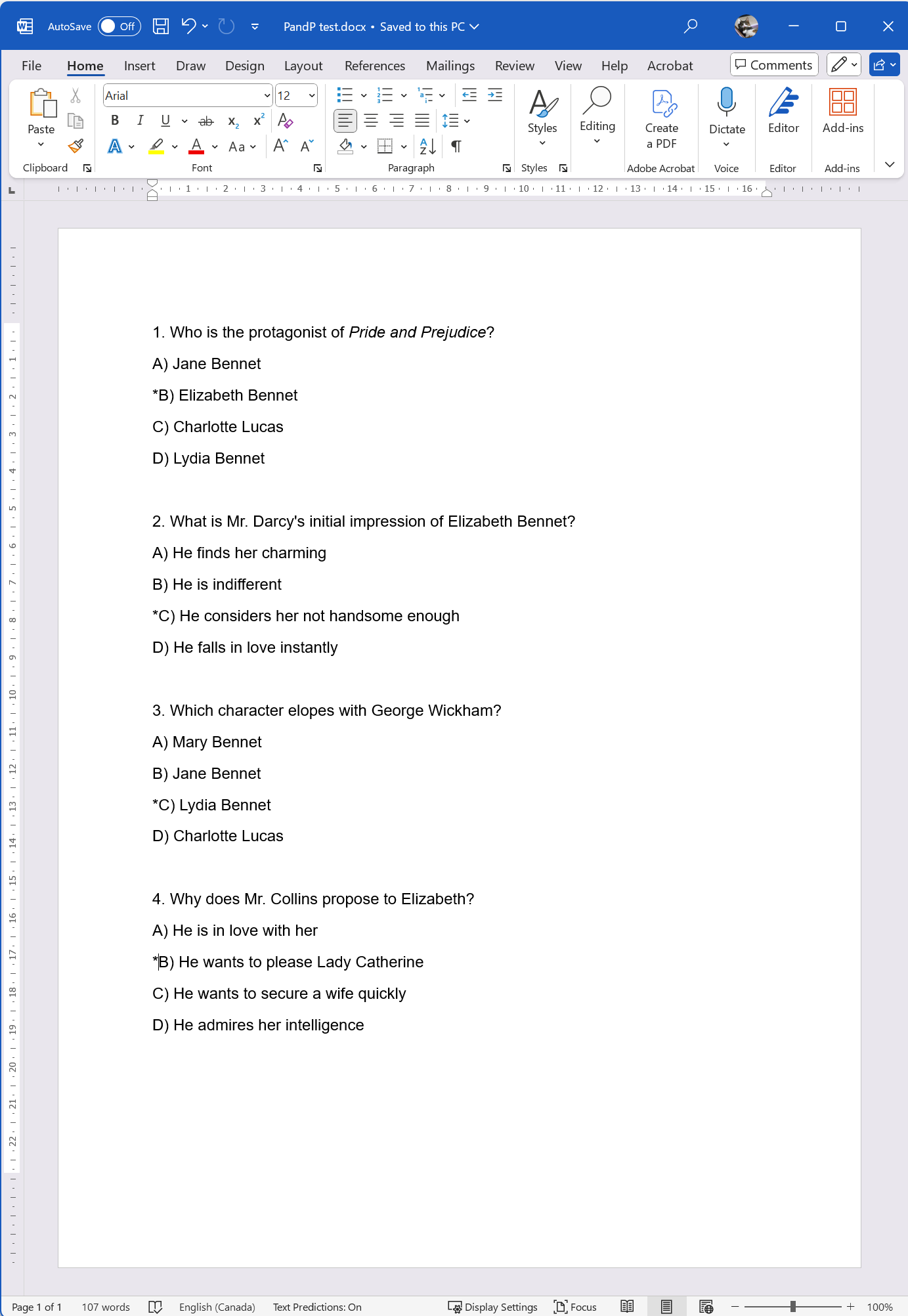 - This is what I started with in MS Word. I typed an asterisk by the correct choices as it was a quick way to indicate the answers for so few questions. Though the text has a consistent setup, it does not match the Aiken format (see pictures above). In particular, the choice letters must have a period in place of the parenthesis.