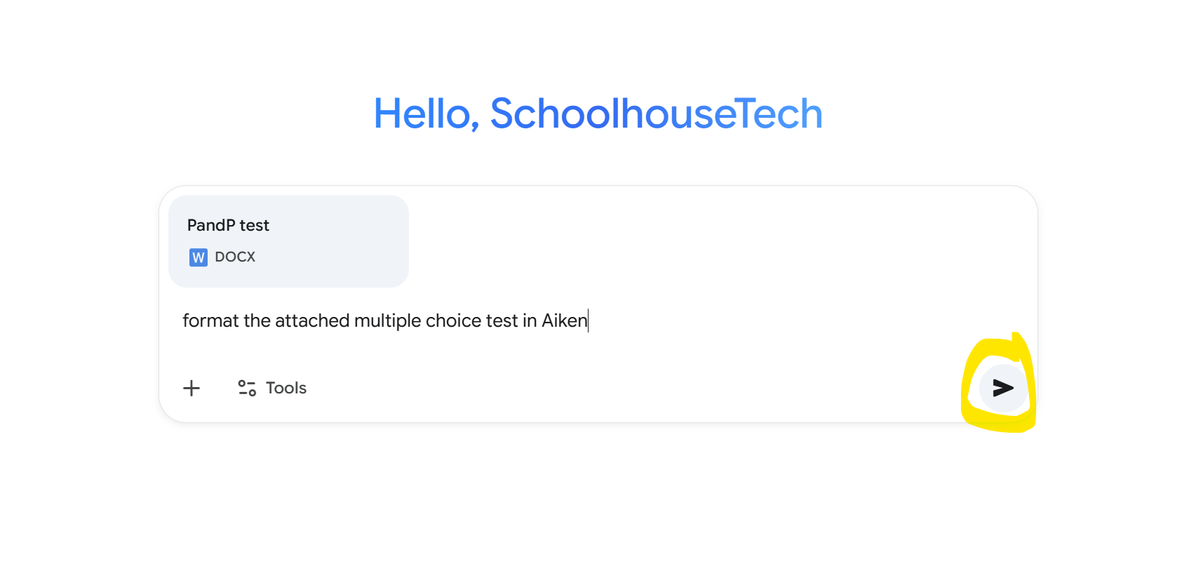 - I tried a couple of AI programs, and I found that Google Gemini gave me good results without having a lot of experience. I opened the Gemini webpage in Google Chrome. It's obvious where to type my question, but not where to put my multiple choice questions that need editing. Then I hovered over the plus sign (+) and found that an file could be uploaded. I uploaded my MS Word document.