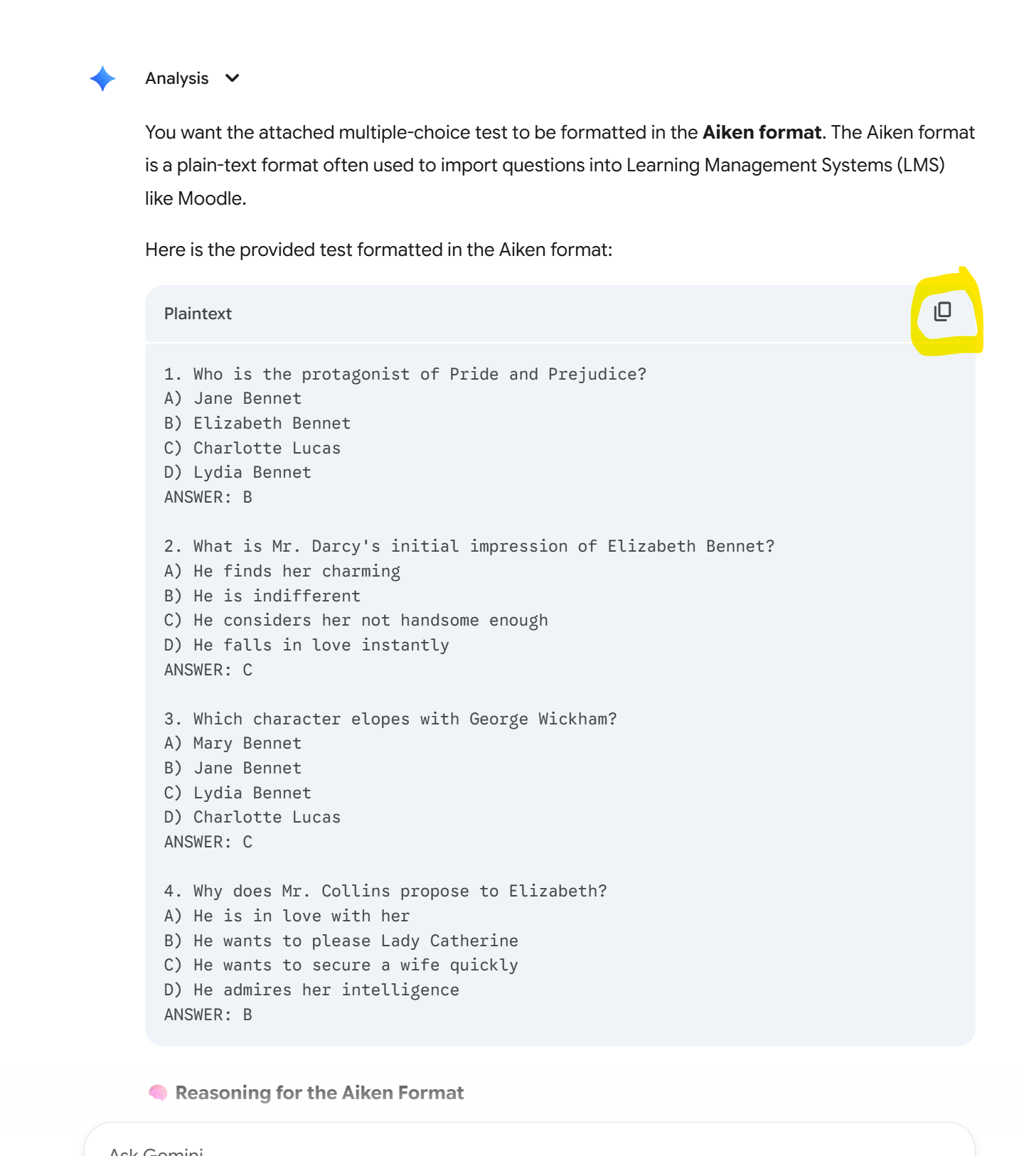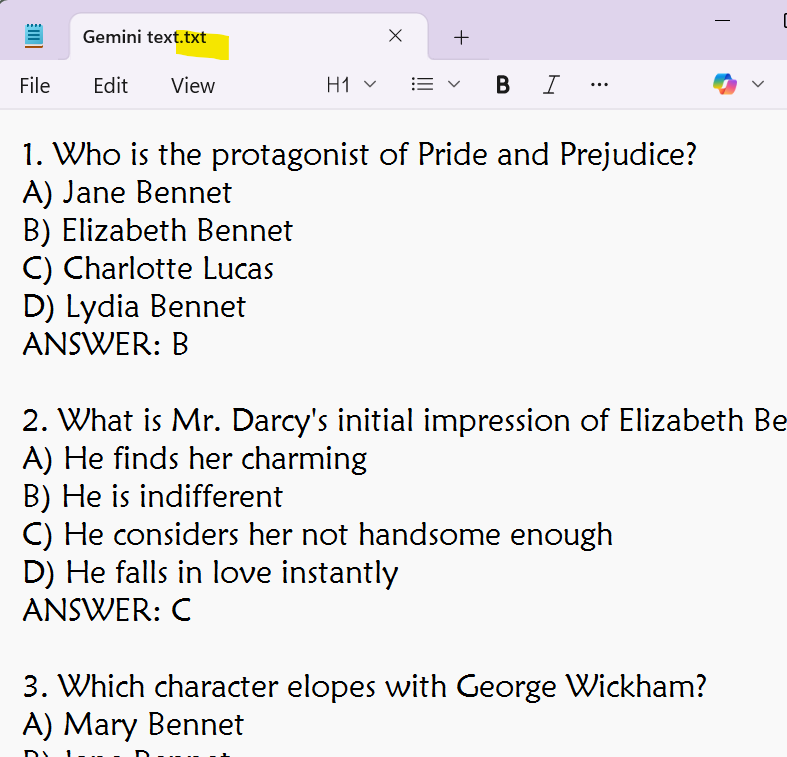 With just four questions, I could probably replace the parenthesis with periods, but if you have more than10 questions, that is just too much work. I decided to let an AI program help me.
